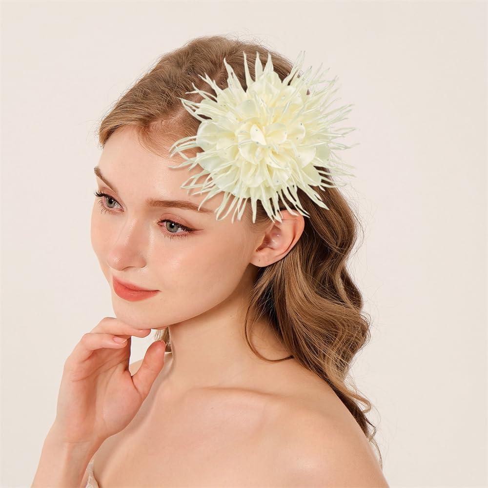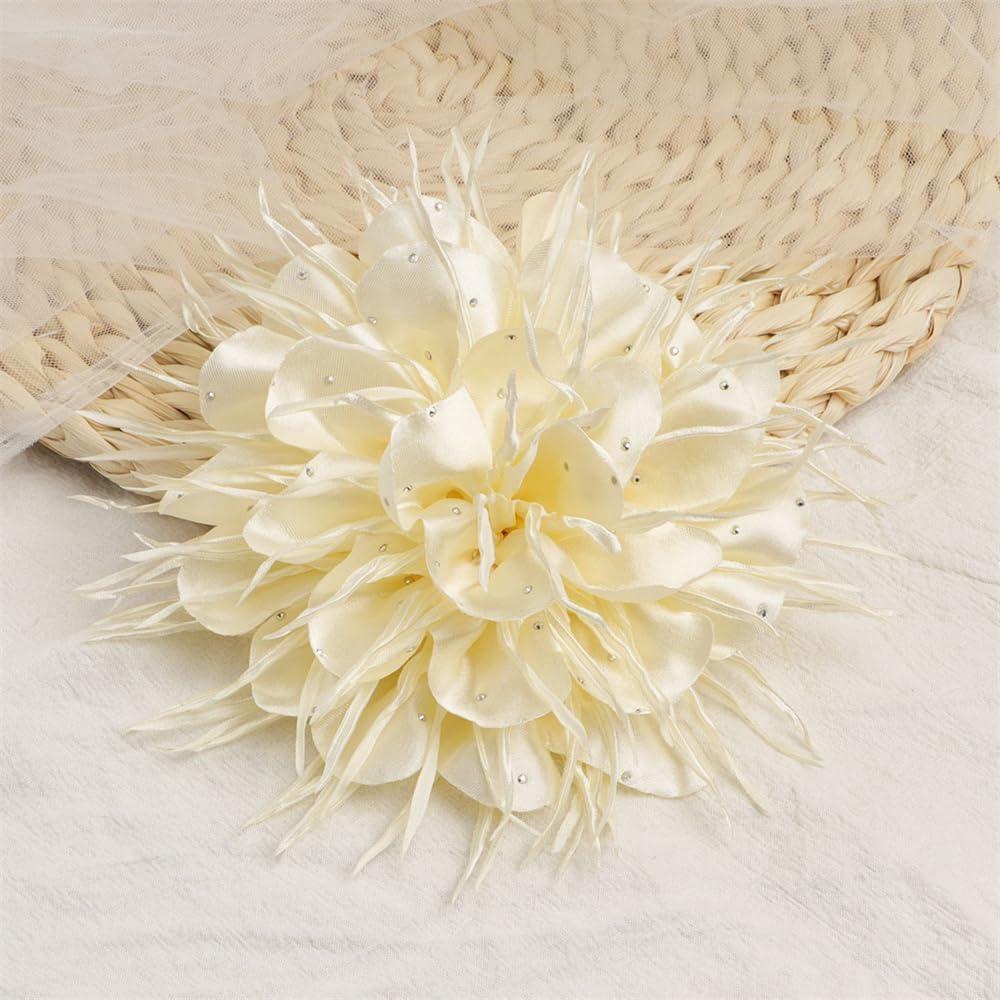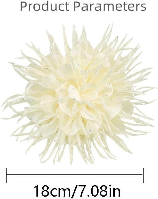 18cm/7in Dainty Spiky Fabric Flower Brooch Pin for Women Girls Elegant Crystal Colorful Pom-Pom Fluffy Floral Peony Brooches Lapel Hair Pins Trendy Party Dress Accessories Jewelry(Beige)