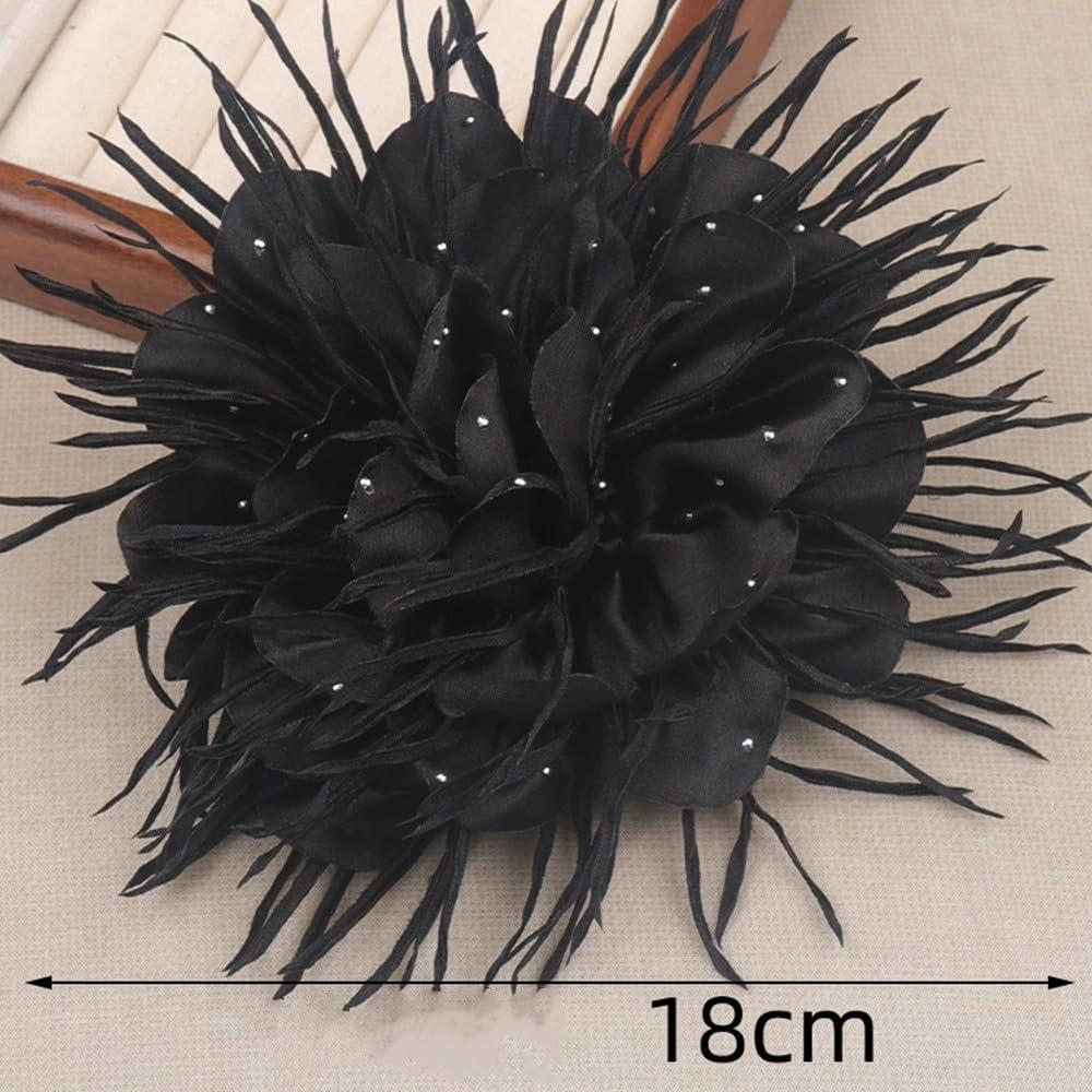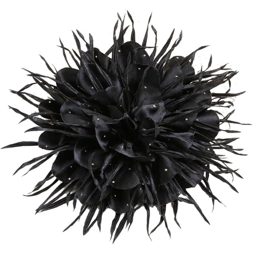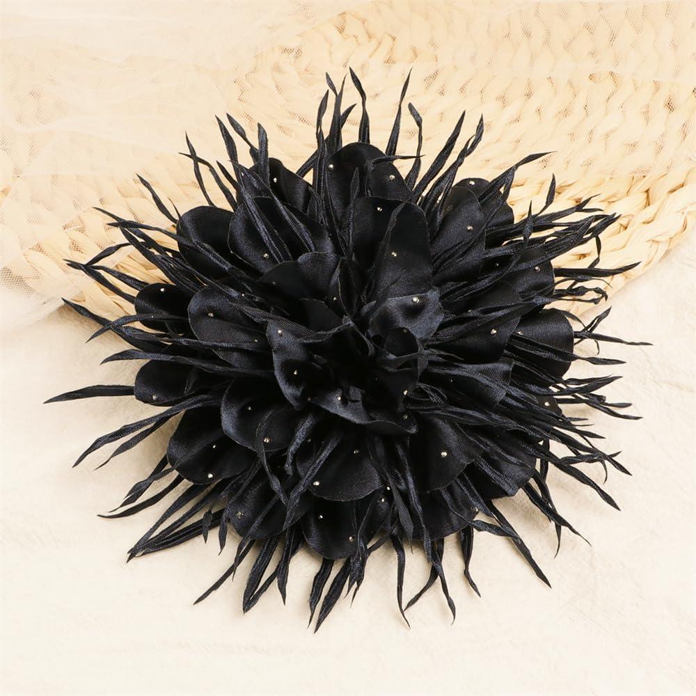 18cm/7in Dainty Spiky Fabric Flower Brooch Pin for Women Girls Elegant Crystal Colorful Pom-Pom Fluffy Floral Peony Brooches Lapel Hair Pins Trendy Party Dress Accessories Jewelry(Black)