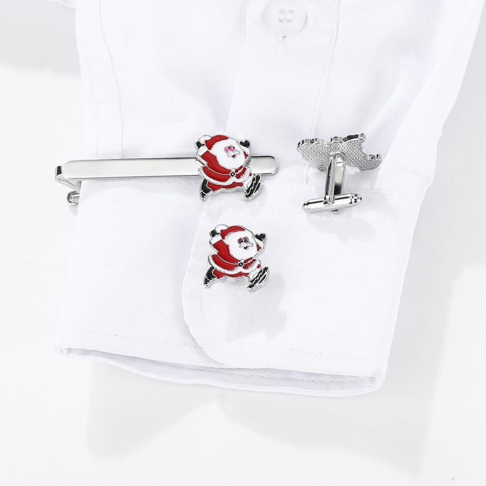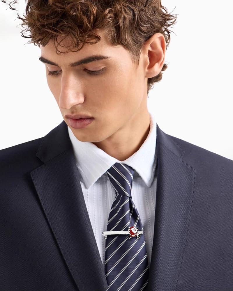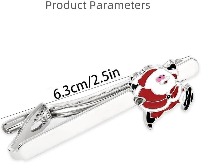 Add a festive touch to your formal attire with this charming 2.5-inch Christmas-themed tie clip. The silvery metal bar features two delightful holiday designs – a jolly Santa Claus figure in classic red and white, and a sparkling Christmas tree adorned with crystal-like accents in cheerful green. Perfect for holiday parties, winter celebrations, or adding seasonal flair to business wear, this tie bar combines functionality with festive style. The secure clasp keeps your tie neatly in place while showcasing your holiday spirit. The durable metal construction and detailed enamel work make this accessory both practical and decorative. Ideal as a thoughtful gift or a personal accent piece, this tie clip coordinates beautifully with dress shirts, suits, and tuxedos. The classic design ensures it remains a treasured addition to any gentleman's holiday wardrobe collection. At 2.5 inches in length, it's perfectly proportioned for standard-width ties.