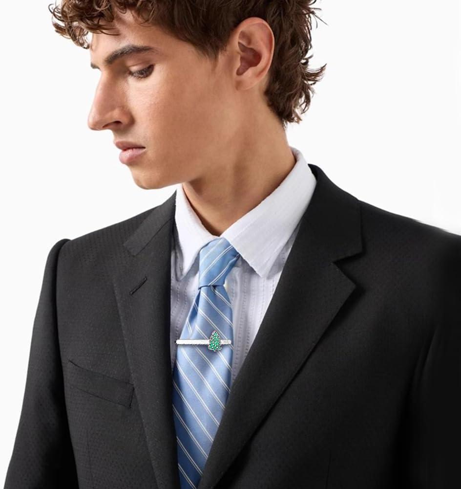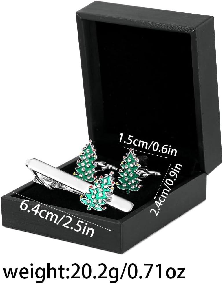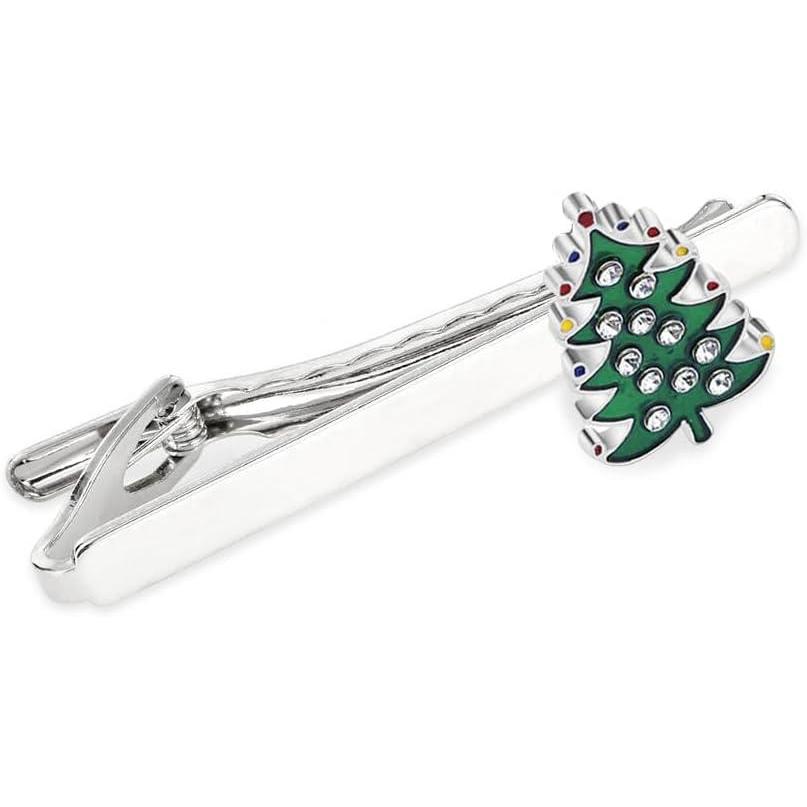 Add a festive touch to your formal attire with this charming 2.5-inch Christmas-themed tie clip. The silvery metal bar features two delightful holiday designs – a jolly Santa Claus figure in classic red and white, and a sparkling Christmas tree adorned with crystal-like accents in cheerful green. Perfect for holiday parties, winter celebrations, or adding seasonal flair to business wear, this tie bar combines functionality with festive style. The secure clasp keeps your tie neatly in place while showcasing your holiday spirit. The durable metal construction and detailed enamel work make this accessory both practical and decorative. Ideal as a thoughtful gift or a personal accent piece, this tie clip coordinates beautifully with dress shirts, suits, and tuxedos. The classic design ensures it remains a treasured addition to any gentleman's holiday wardrobe collection. At 2.5 inches in length, it's perfectly proportioned for standard-width ties.
