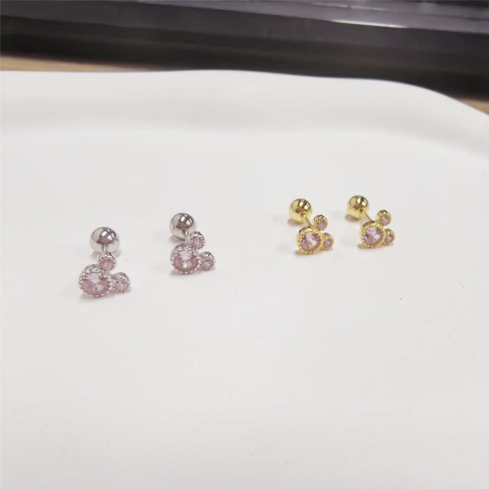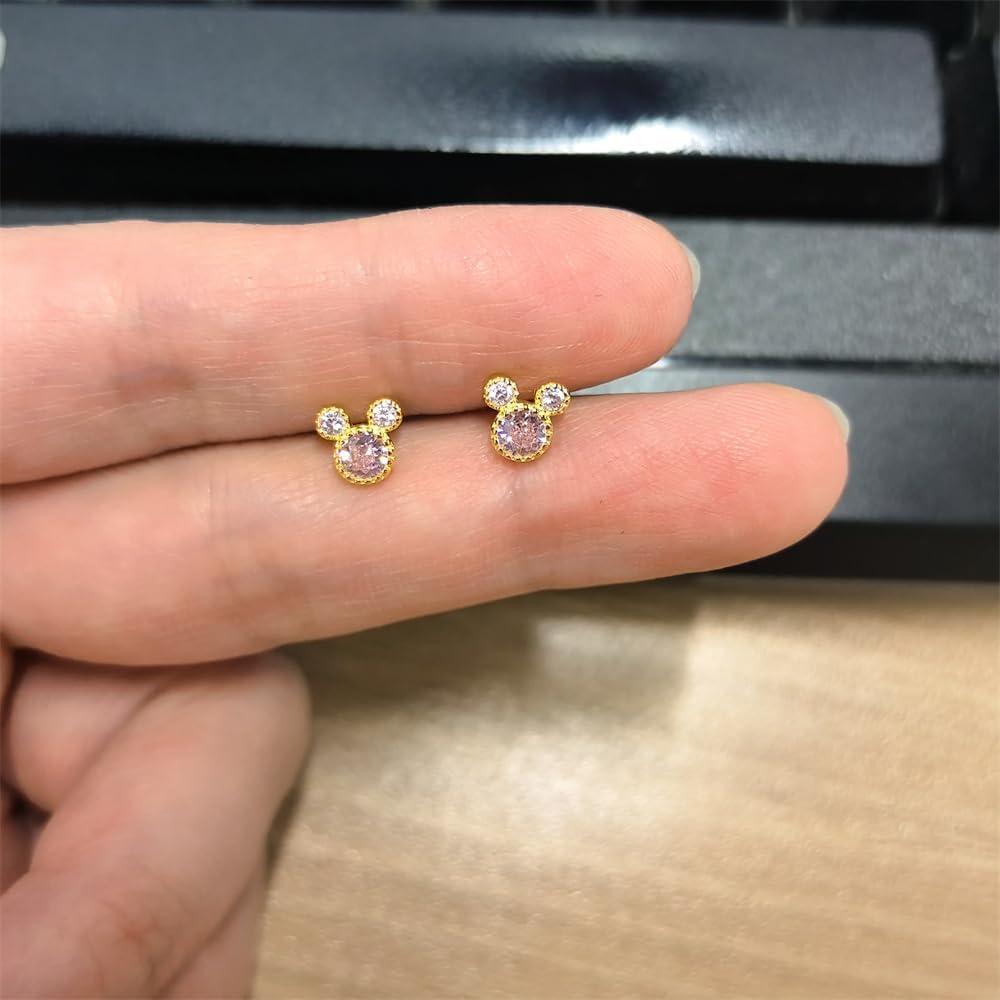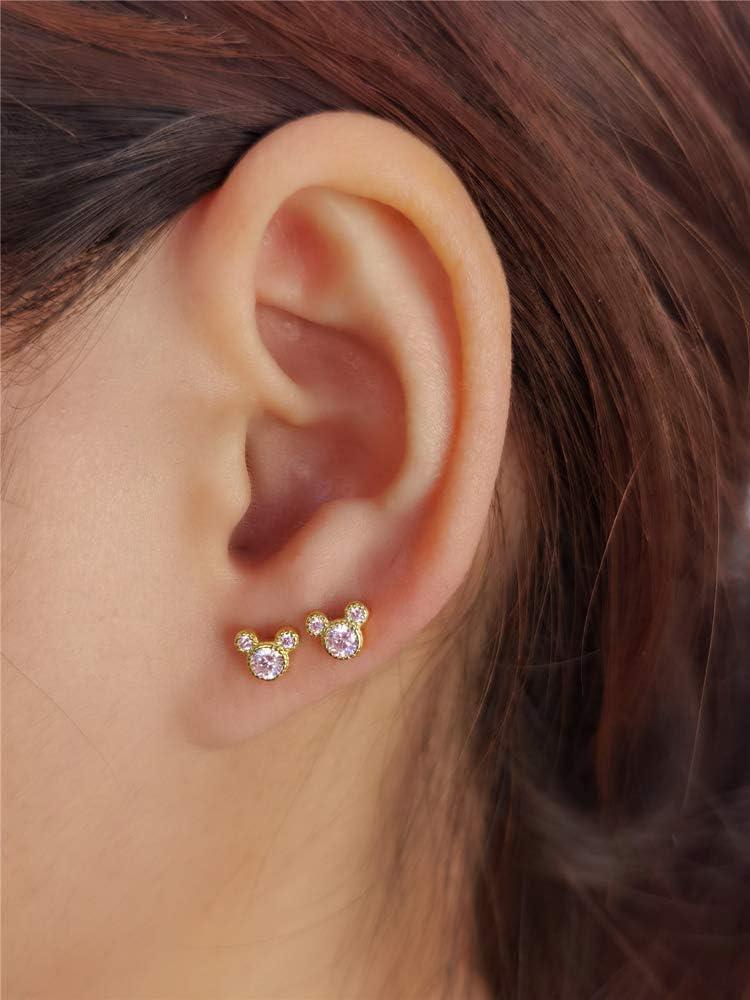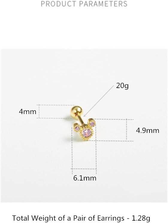 image20g Tiny Cute Mouse Stud Sterling Silver Earrings for Women Cubic Zirconia Mini Small Barbell Ball Studs Cartilage Tragus 4 mm Bead Screw Back Piercing Body Jewelry Holiday Birthday Souvenir GiftsGold Pink