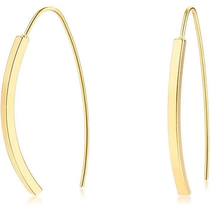 Arc Bar Dangle Drop Earrings for Women Girls Stainess Steel 14K Gold Plated Simple Minimalist Geometric Rectangular Open Wire Hoop Cuff Curving Threader Hypoallergenic Stud Personalized Jewelry Gifts