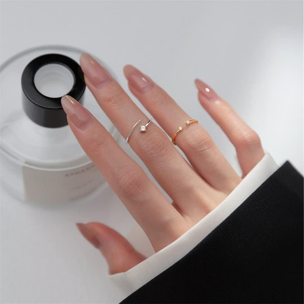 Cute CZ 925 Sterling Silver Promise Ring for Women Girls Expandable Adjustable Knuckle Tail Open Wrap Finger Rings Comfort Fit Simple Wedding Engagement Jewelry Gift Size 6-9