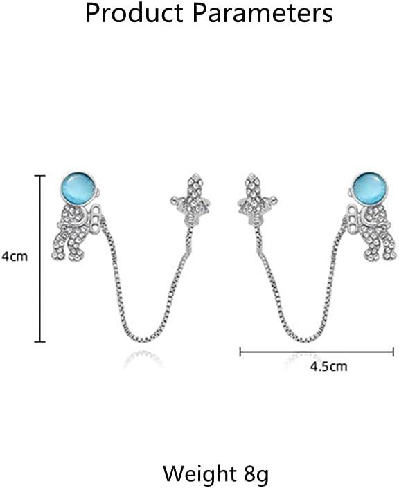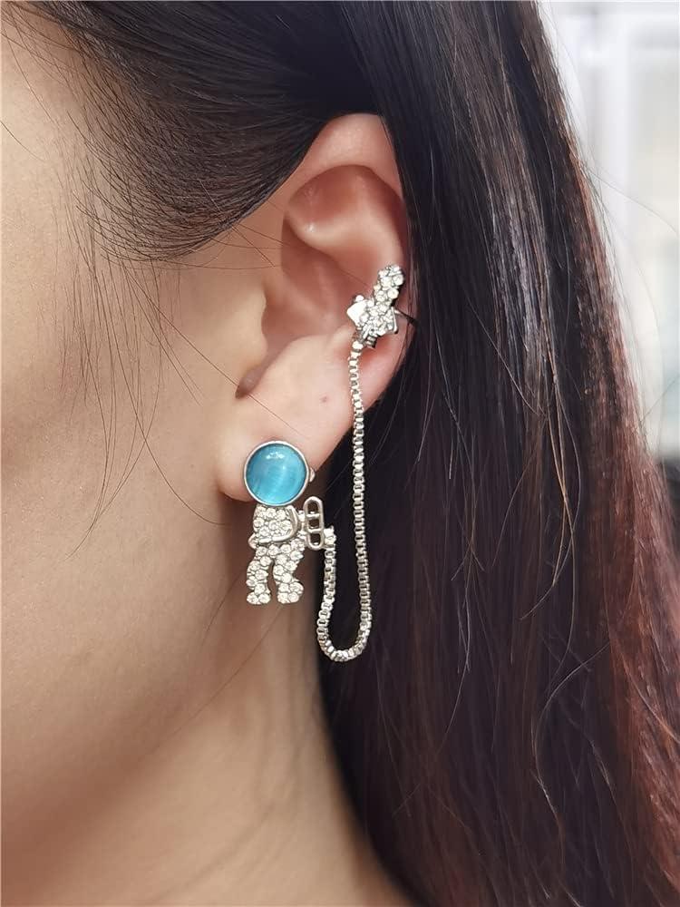 CZ Astronaut Space Ear Cuff Crawler Climber Tassel Chain Dangle Earrings Cubic Zirconia Cute Spaceman Spacecraft Box Chains Drop Small Studs Piercing Earring Fashion Unique Jewelry Gifts for