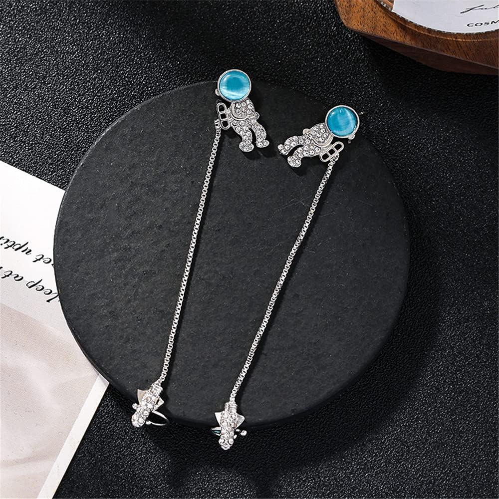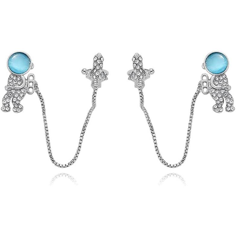 imageCZ Astronaut Space Ear Cuff Crawler Climber Tassel Chain Dangle Earrings Cubic Zirconia Cute Spaceman Spacecraft Box Chains Drop Small Studs Piercing Earring Fashion Unique Jewelry Gifts for