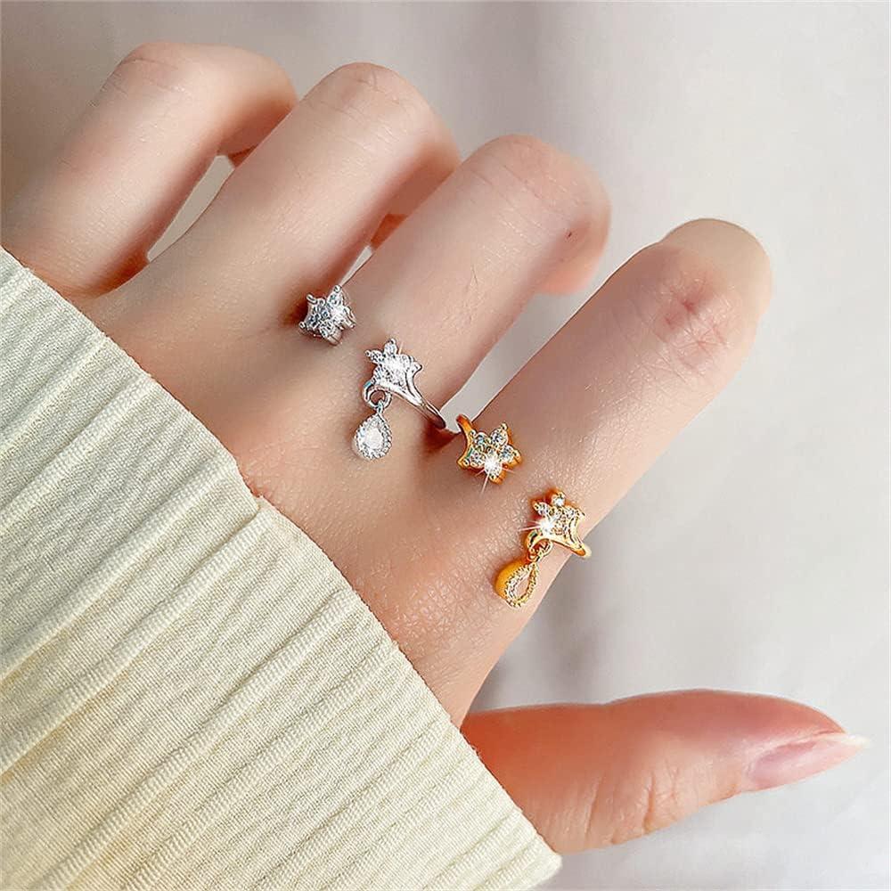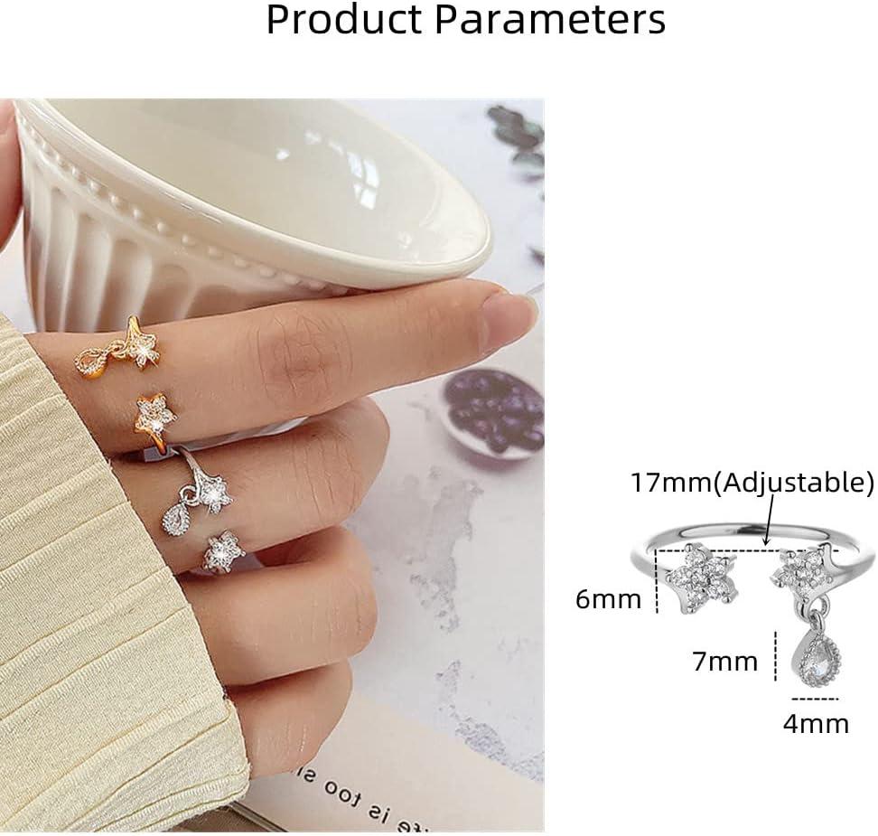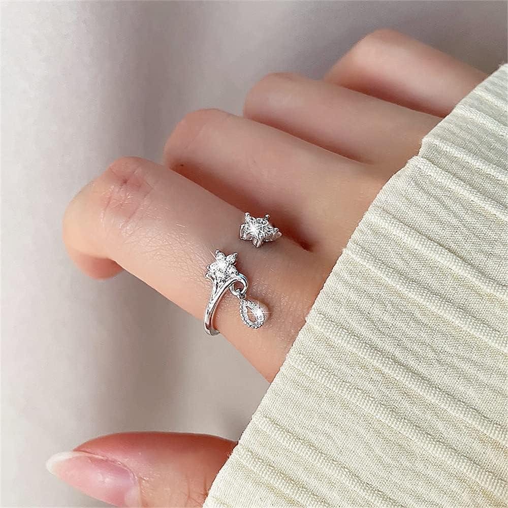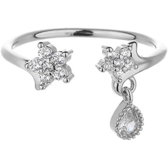 imageCZ Flower Star Open Wrap Ring for Women Girls Silvery Cubic Zirconia Teardrop Charms Drop Dangle Adjustable Finger Rings Comfort Fit Fashion Cute Wedding Engagement Birthday Christmas Jewelry Gift