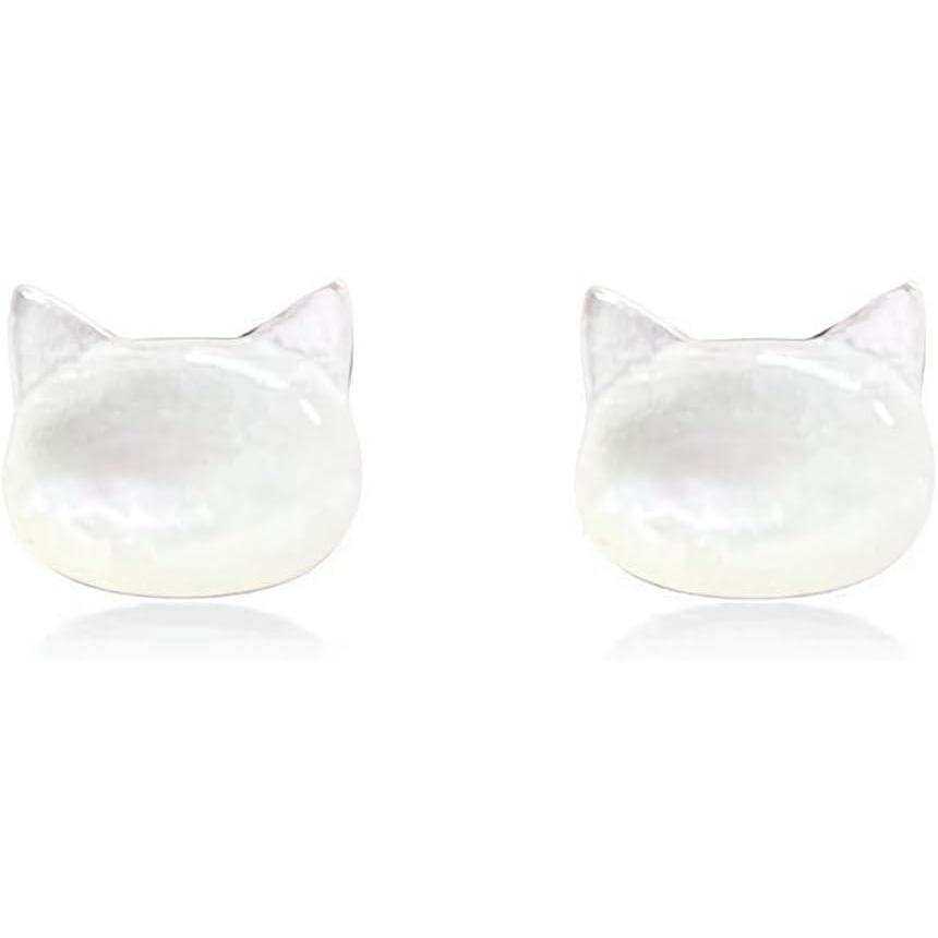 imageDainty Shell Pearl Cat Stud Earrings for Women Girls 925 Sterling Silver Hypoallergenic Nickel Free Tiny Small Kitten Animal Studs Cartilage Tragus Post Cute Birthday Halloween Christmas Jewelry GiftsWhite