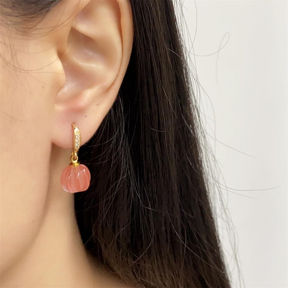 Delicate Pumpkin Dangle Earrings for Women Gold Plated Dainty CZ Halloween Thanksgiving Color Birthstone Charms Drop Fish Hook Dangling Fall Holiday Festival Dress Accessories Gifts(Pink)