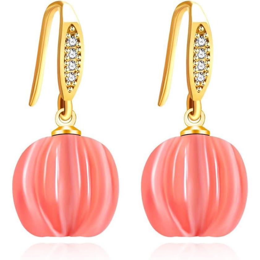 imageDelicate Pumpkin Dangle Earrings for Women Gold Plated Dainty CZ Halloween Thanksgiving Color Birthstone Charms Drop Fish Hook Dangling Fall Holiday Festival Dress Accessories GiftsPink