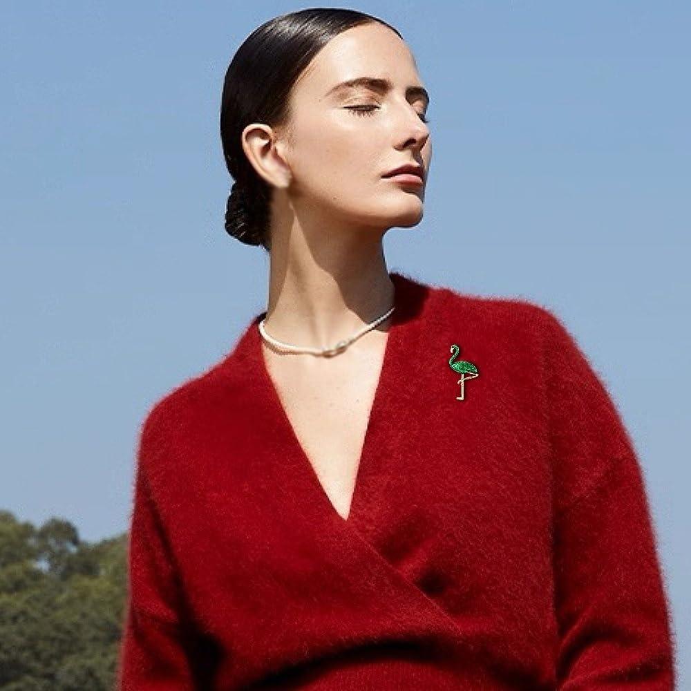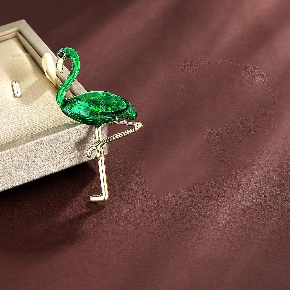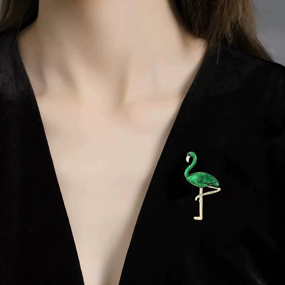 Add a splash of tropical elegance to your outfit with this eye-catching green enamel flamingo brooch. Crafted with meticulous attention to detail, this medium-sized brooch features a striking emerald-green enamel finish complemented by gold-toned metalwork that captures the graceful pose of a flamingo. Perfect for adorning hats, bags, suits, ties, or dresses. The secure pin clasp ensures your brooch stays firmly in place while making a statement. Whether you're attending a birthday celebration, festival, Christmas party, or simply want to add a whimsical touch to your daily ensemble, this charming bird-themed brooch delivers both style and sophistication. The alloy construction provides durability while maintaining a lightweight. This fashion-forward piece works equally well for both casual and formal occasions, making it an ideal addition to any accessories collection.