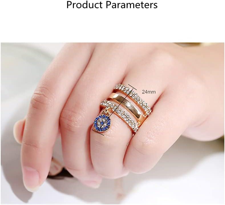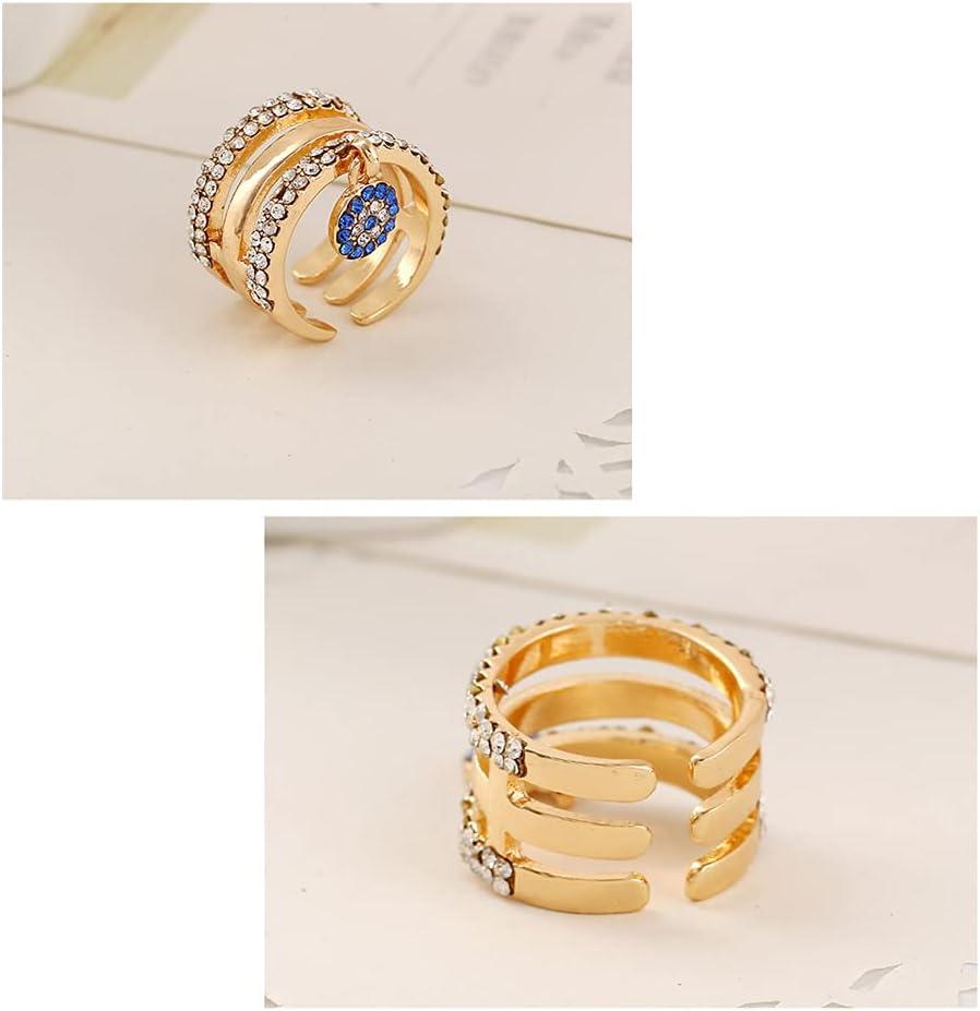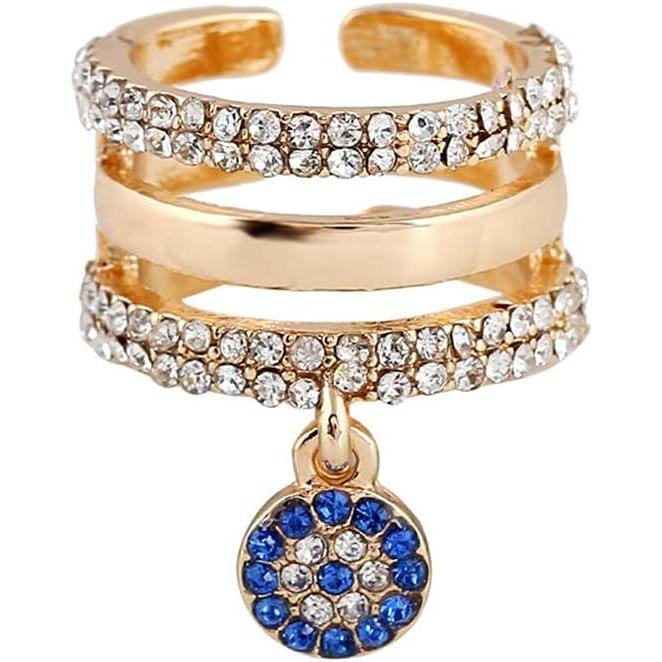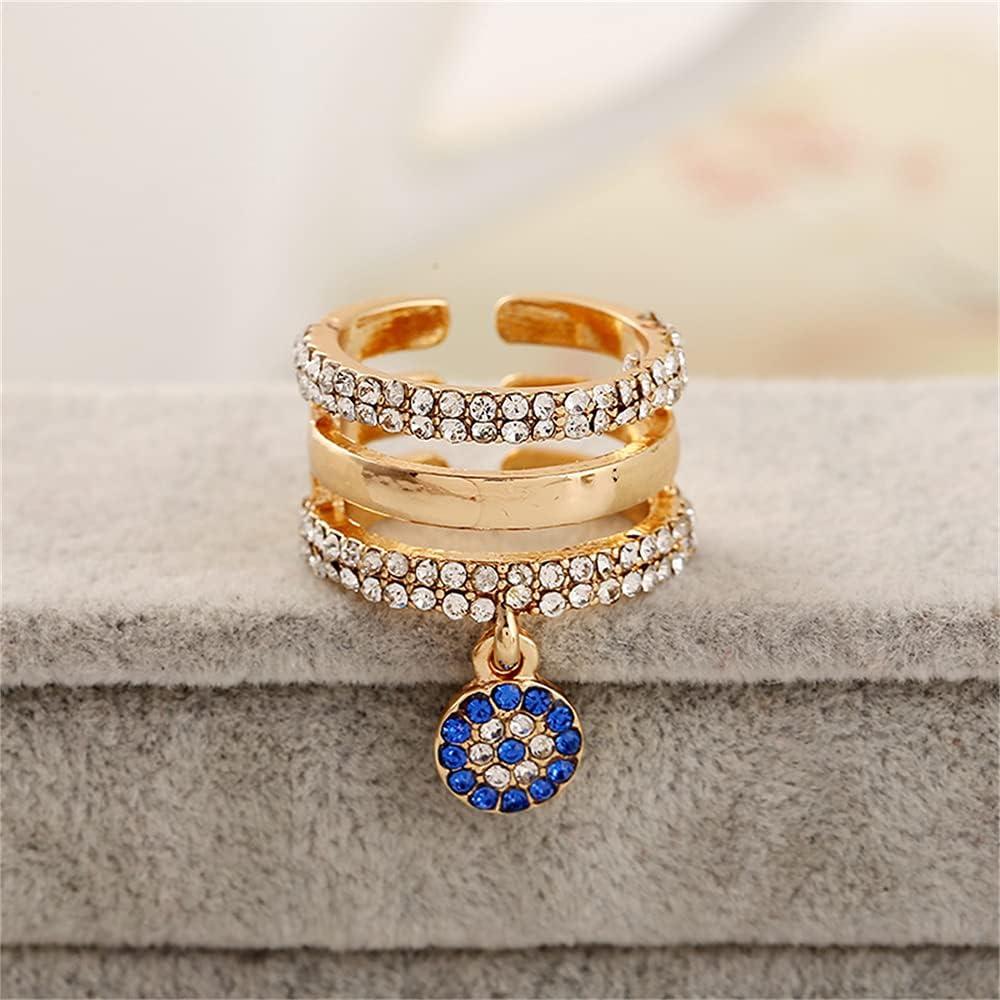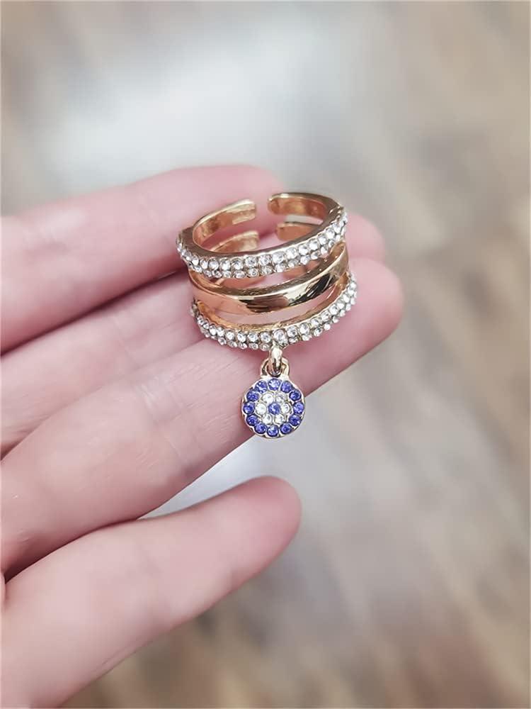 Layered CZ Evil Eye Statement Ring for Women Girl Protection Boho Crystal Gold Plated Open Band Wrap Size 6 Finger Rings Comfort Fit Bohemian Wedding Birthday Cocktail Party Jewelry
