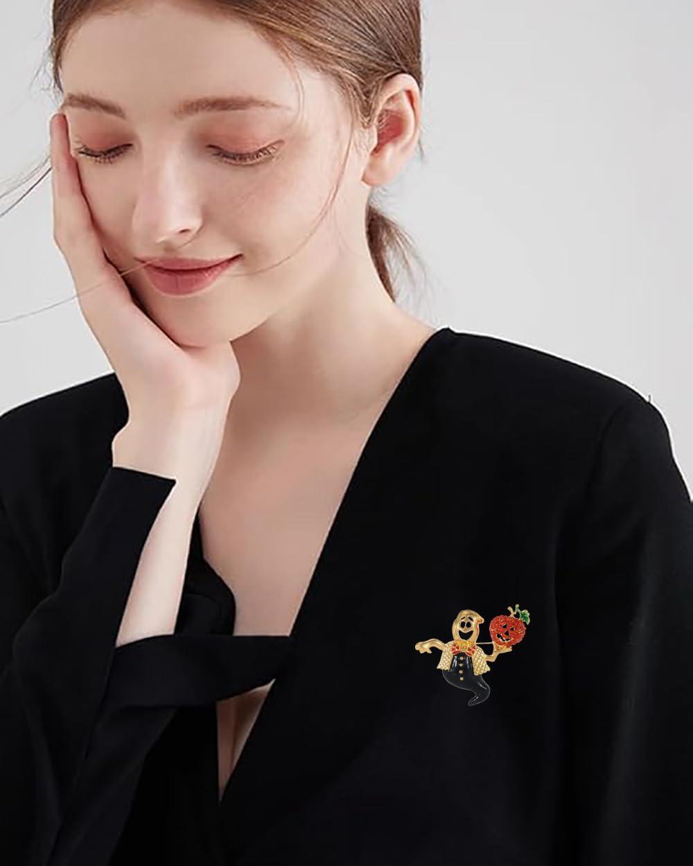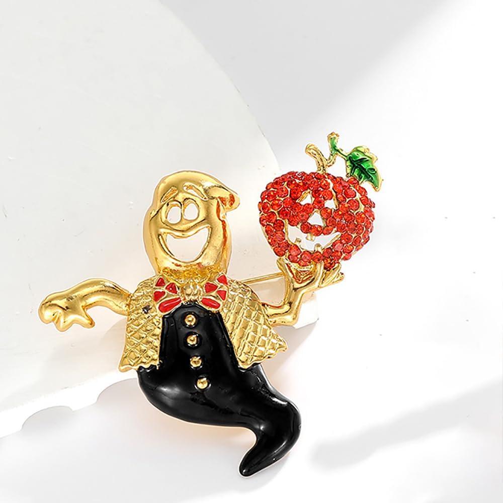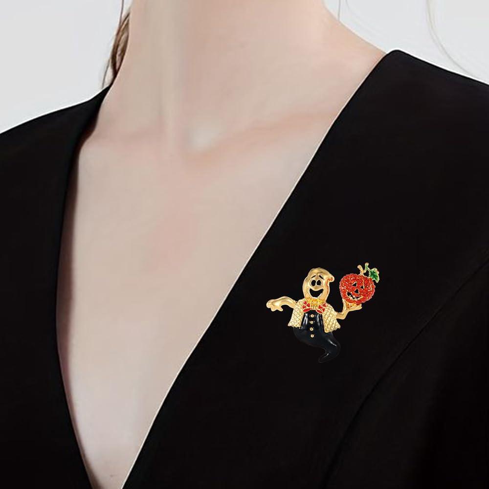 Celebrate the spooky season in style with this unique and eye-catching brooch pin! Crafted with meticulous attention to detail, this captivating piece features a whimsical ghost waiter figure holding a vibrant red pumpkin. The brooch is expertly crafted with a gold-plated finish and vibrant enamel accents, making it a true statement accessory. Wear it on a blazer, scarf, or bag for an instant conversation starter that's sure to turn heads. With its playful design and high-quality construction, this brooch pin is a must-have for anyone who loves to celebrate the holidays in style.