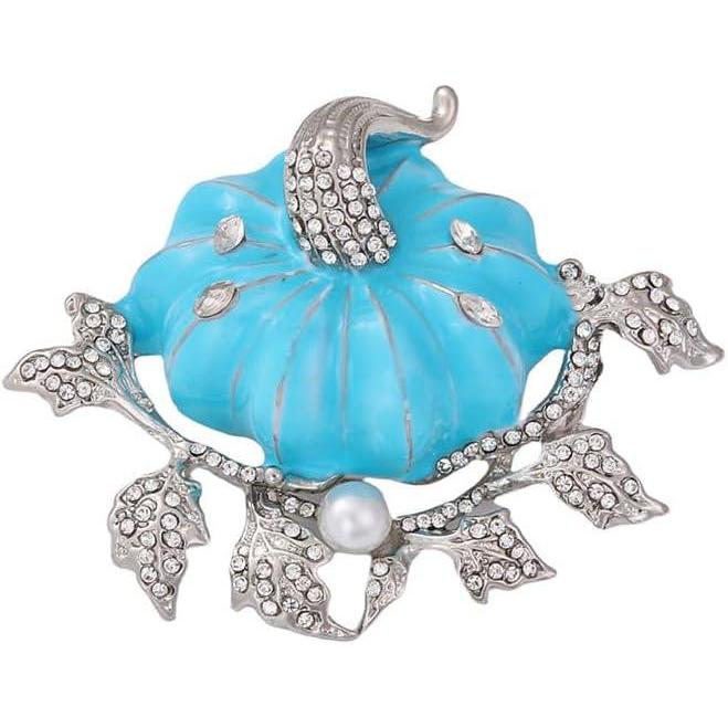 imageRhinestone Autumn Pumpkin Brooch for Women Girls Fashion Enamel Halloween Thanksgiving Crystal Leaf Brooches Lapel Pins Fall Holiday Festival Party Dress Accessories GiftSilver Blue