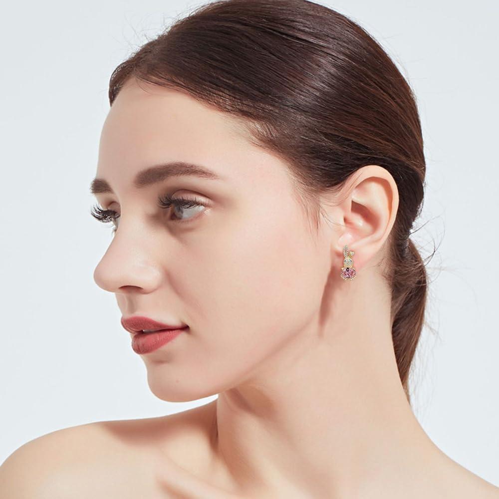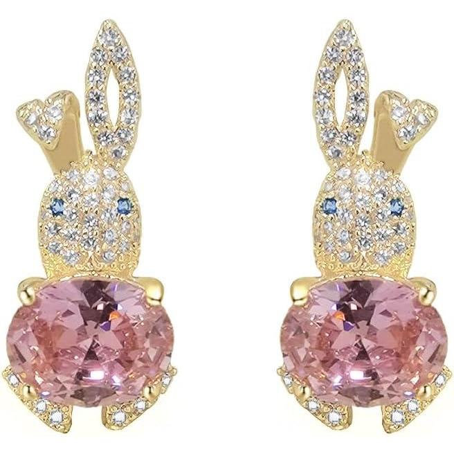 imageRhinestone Rabbit Stud Earrings for Women Girls Hypoallergenic Cute Crystal Birthstone Bunny Animal Pet Cartilage Post Dainty Birthday Easter Holiday Jewelry Gifts for Daughter NieceYellow with Pink CZ