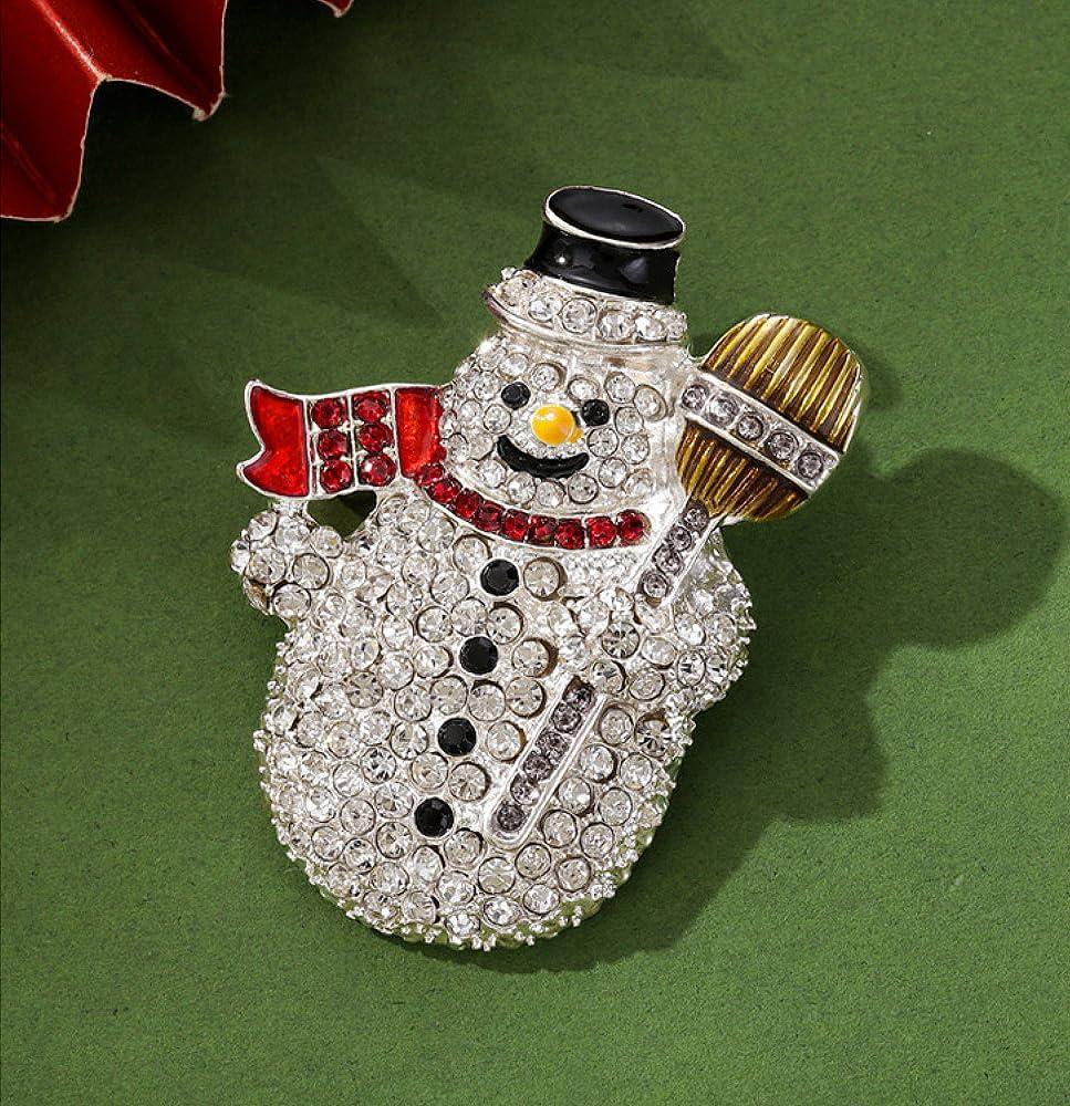 Add a touch of winter wonder to your attire with this dazzling snowman brooch pin. This charming piece features a silver-tone snowman adorned with sparkling clear crystals, complete with a golden-ridged top hat, red scarf, and endearing smile. Measuring approximately 2.1 inches in height and 1.57 inches in width, this lightweight accessory weighs just 0.67 ounces, making it perfect for decorating hats, bags, suits, or scarves. The intricate crystal detailing catches light beautifully, creating a festive sparkle that's ideal for holiday parties and winter celebrations. The secure pin closure ensures this delightful piece stays firmly in place. Whether worn as a statement piece during the Christmas season or given as a thoughtful gift, this versatile brooch adds a whimsical touch to any ensemble. The detailed craftsmanship makes each crystal-encrusted element pop, from the snowman's jolly expression to his dapper hat, creating a conversation-starting accessory that brings holiday cheer to any outfit.