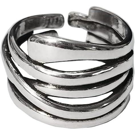 Silver Cross Ring Enhancers for Women Girls Vintage Chunky Wide Open Band Statement Engagement Knuckle Finger Rings Comfort Fit Fashion Punk Personalized Jewelry BFF Gifts (Intertwined)