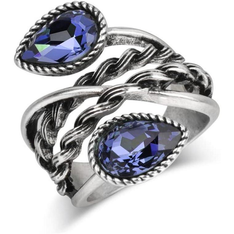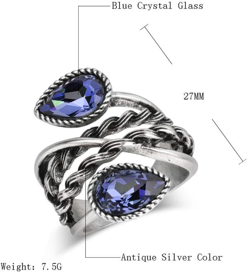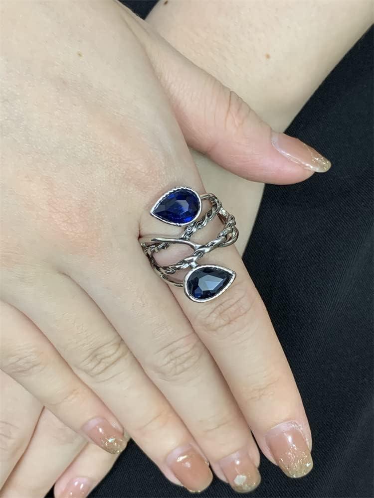 imageVintage Double CZ Teardrop Wedding Engagement Statement Ring for Women Girls Silvery Twisted Cross Imitation Sapphire Birthstone Retro Boho Birthday Promise Cocktail Party Jewelry Gift Size 8