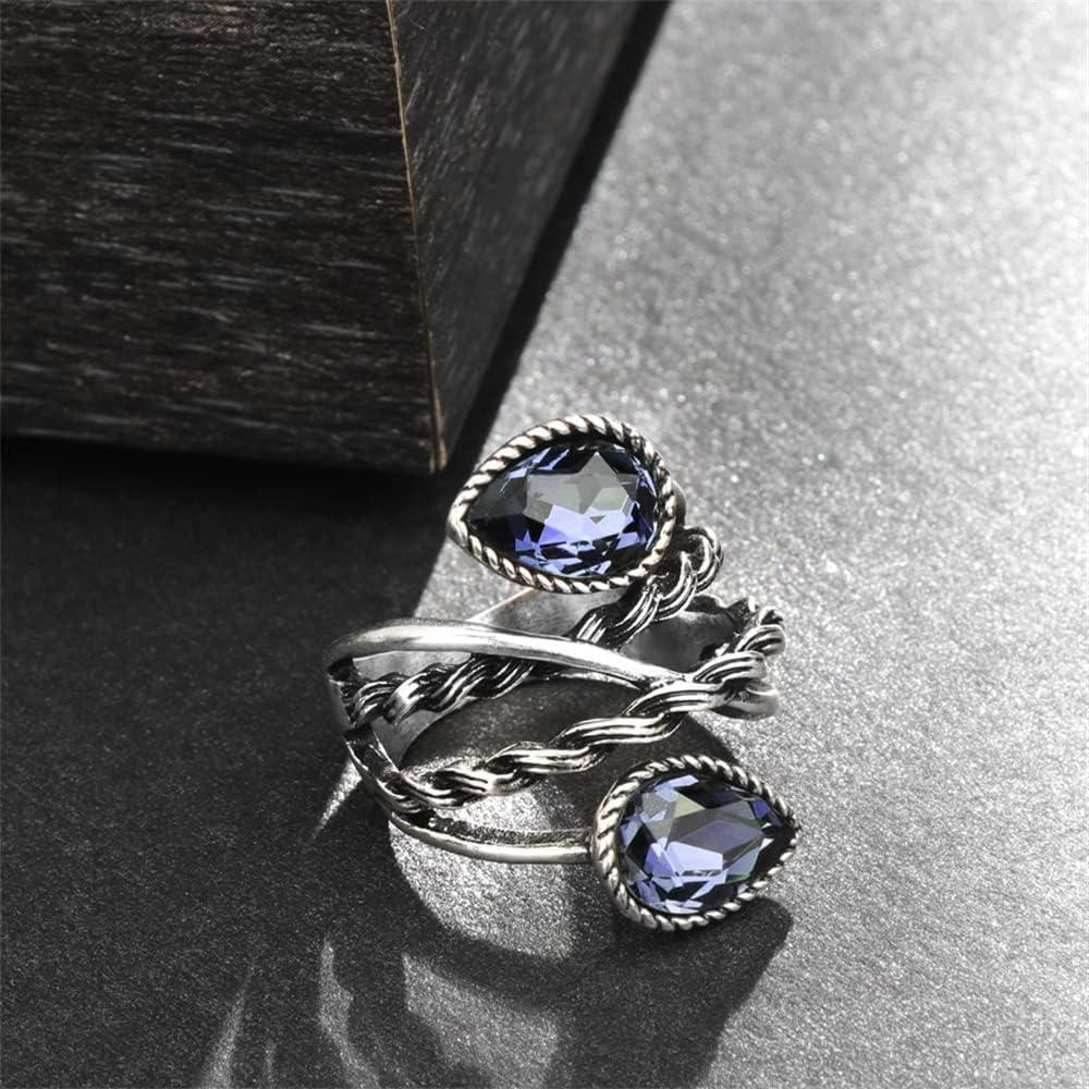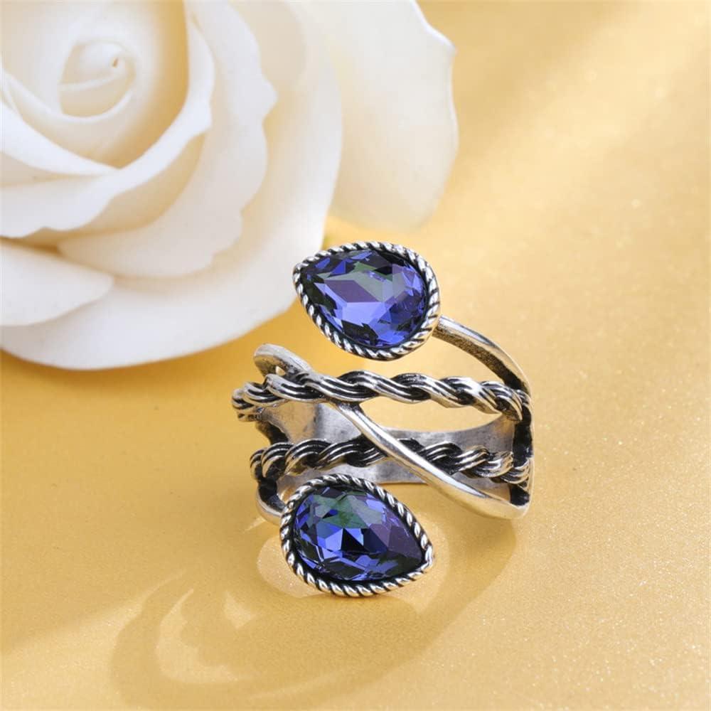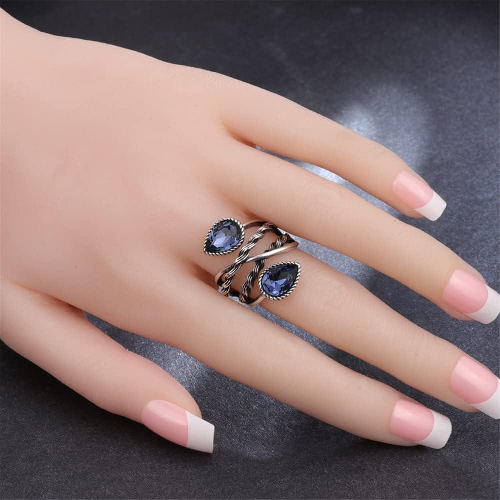 Vintage Double CZ Teardrop Wedding Engagement Statement Ring for Women Girls Silvery Twisted Cross Imitation Sapphire Birthstone Retro Boho Birthday Promise Cocktail Party Jewelry Gift Size 8