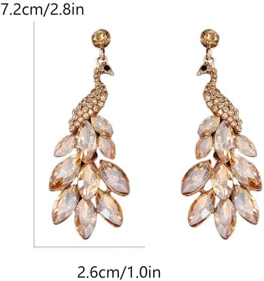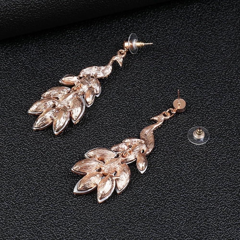 Vintage Peacock Dangle Earrings for Women 14K Gold Plated Green Crystal Feather Peafowl Statement Drop Dangling Stud Earring Boho Exaggerated Birthday Holiday Jewelry Gifts(Champagne)