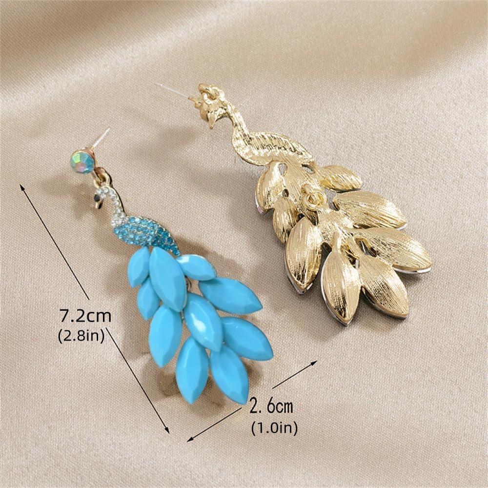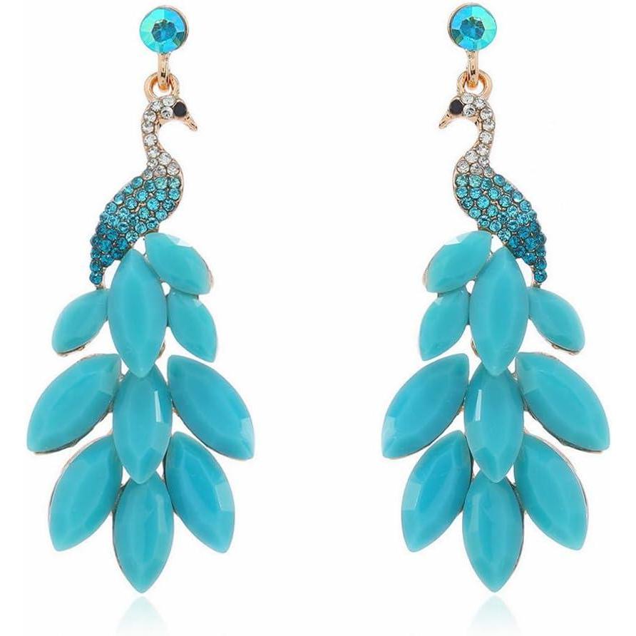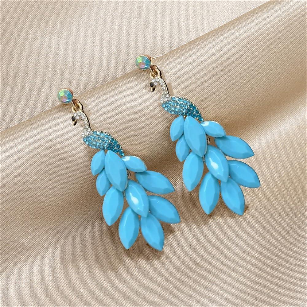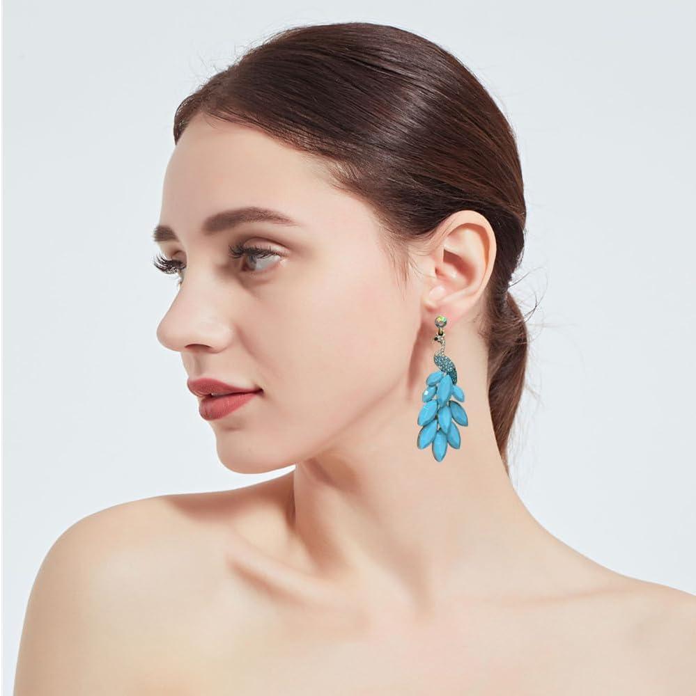 image:imageVintage Peacock Dangle Earrings for Women 14K Gold Plated Green Crystal Feather Peafowl Statement Drop Dangling Stud Earring Boho Exaggerated Birthday Holiday Jewelry GiftsTurquoise